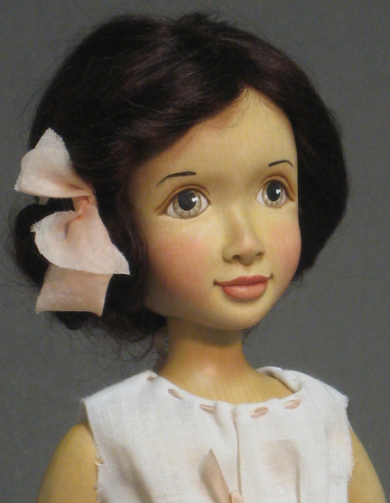 The sophisticated brunette is dressed in a delicate white camisole and matching bloomers.